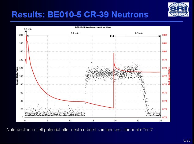 Michael McKubre, director of energy research at SRI International, later told New Energy Times that the BF3 detector that his group used had a very reliable history and that they were well-aware of all the required precautions and potential complications of electronic neutron detectors.