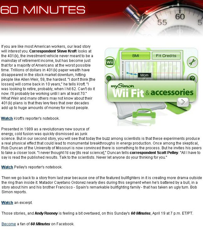 April 24, 1800hrs PST - "60 Minutes"piece is back online - sans the American Physical Society's non-endorsement.
