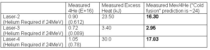 We received a confusing answer. On Jan. 25, 2010, this writer again e-mailed Violante, asking, "What is the amount of helium produced from Laser 2, 3 and 4 experiments?"