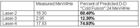 In an attempt to remove any potential ambiguity, we asked him a second time: "What are the measured MeV/4He values for Laser-2, Laser-3 and Laser-4?" He did not respond.