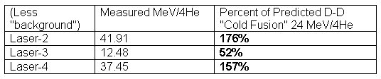 The Violante group's version, based on the Laser-2 run for example, shows the appearance of agreement between the prediction of the D+D —> 4He + ~24 MeV "cold fusion" reaction and experiment. However, the group’s own data contradict that claim.
