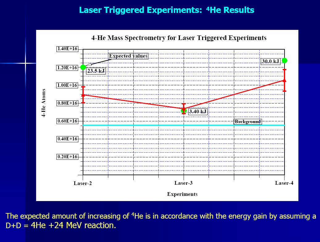 Violante responded, "In terms of new atoms the result is an amount of He[lium] ranging from 1E+15 up to 5e+15 atoms. This is obviously a preliminary result that needs additional research work."