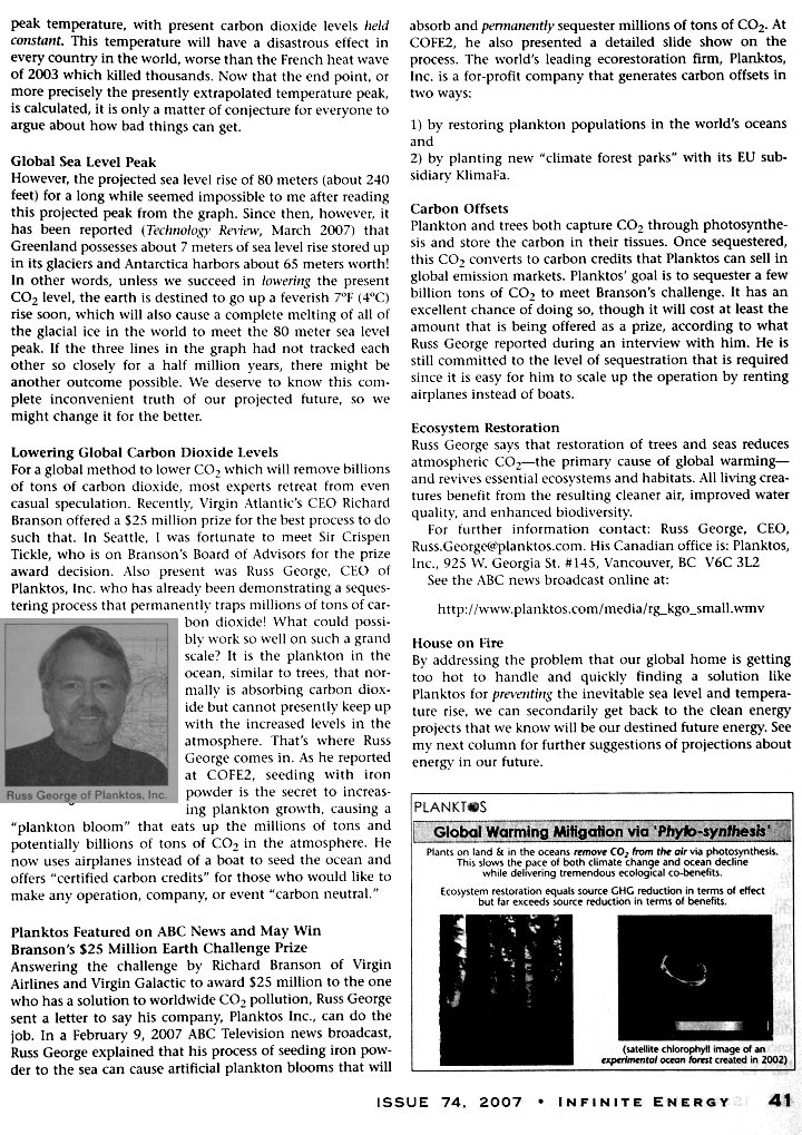 The following article was published in the July/August issue of Infinite Energy. Thomas Valone is a physicist and patent examiner with the U.S. Patent and Trademark Office. Infinite Energy editor Scott Chubb, a physicist with the Naval Research Laboratory is an advisor to Planktos.