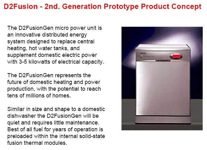 In their conference presentation, Passell and Benson and displayed their best results: a single experiment that produced 300 milliwatts of excess heat for a few hours. At the same time, George was telling people and advertising that, within a few months, D2Fusion Inc. would be selling 1,000-Watt home heaters. When Krivit asked George on what scientific data he based such a drastic improvement, the only data he offered was the research performed by Passell and Benson.